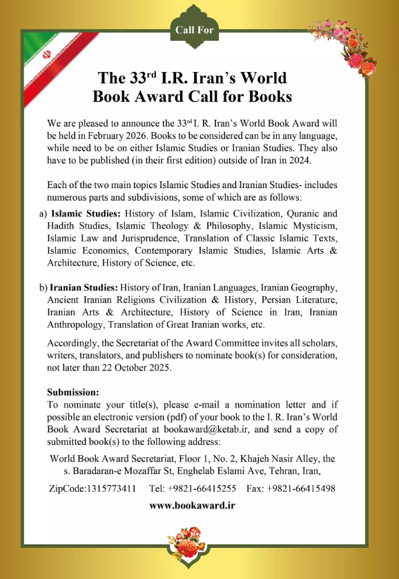 The 33rd Islamic Republic of Iran World Book Award Call for Books